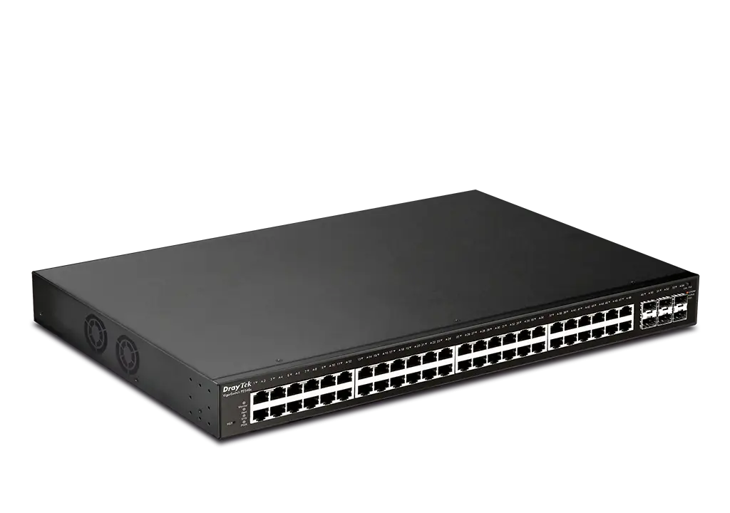 The DrayTek VigorSwitch P2540xs is a Layer 2+ Managed 10GbE PoE switch. It has 48 x GbE PoE+ ports providing 400W power budget and 6 x 10GbE SFP+ slots. Supporting advanced Layer 3 features, DHCP Server and VLAN Routing, the VigorSwitch P2540xs improves network efficiency and helps your network to work continuously even when the gateway is offline, making it ideally utilised as the core switch in SME/SMB.