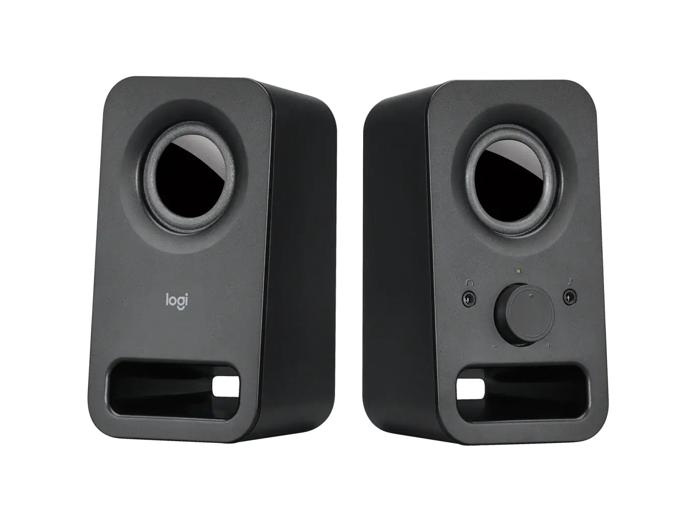 These stereo speakers provide clear sound and the compact design is great for small spaces. Easily access all controls, including the headphone jack, on the right speaker.