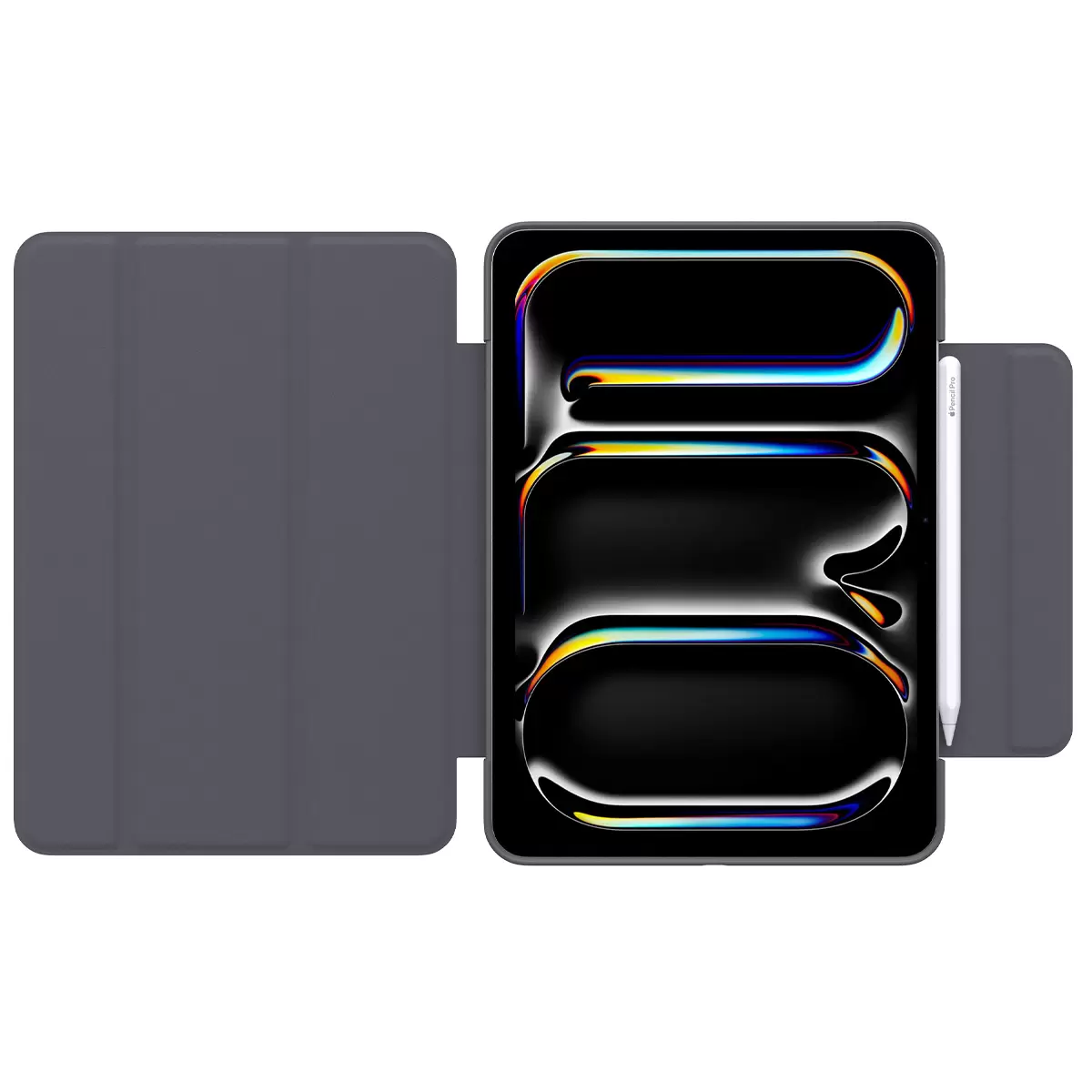 Clear folio iPad Pro 11 inch (M4) case protects against drops and scratches and converts into multiple positions for hands-free typing and viewing. The folio’s microfiber lining guards the screen and holds tight with magnets, which also activate sleep/wake modes for quick-start functionality and battery preservation.